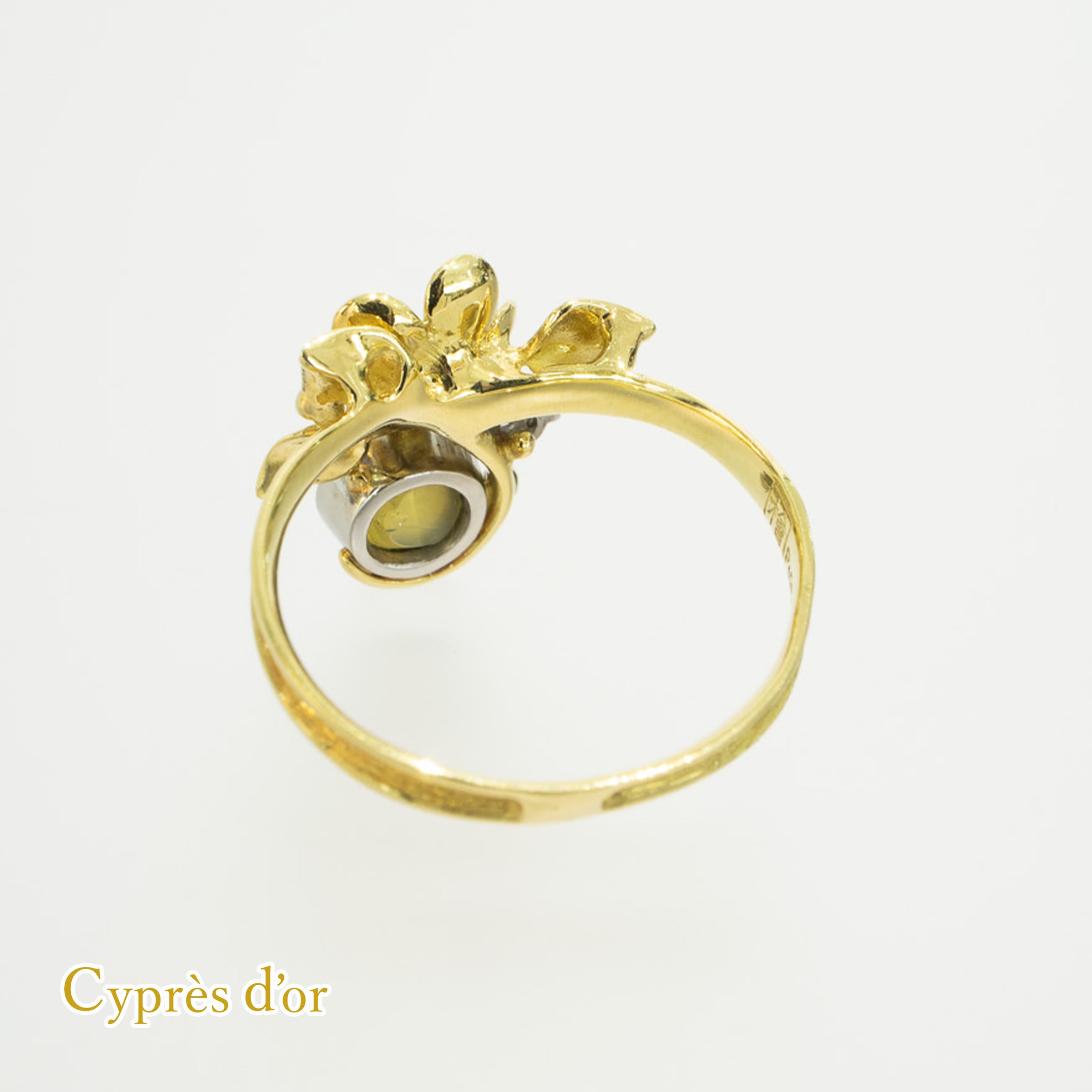 小さな花が咲くように可憐に輝く ― K18YG クリソベリルキャッツアイ&ダイヤモンドリング