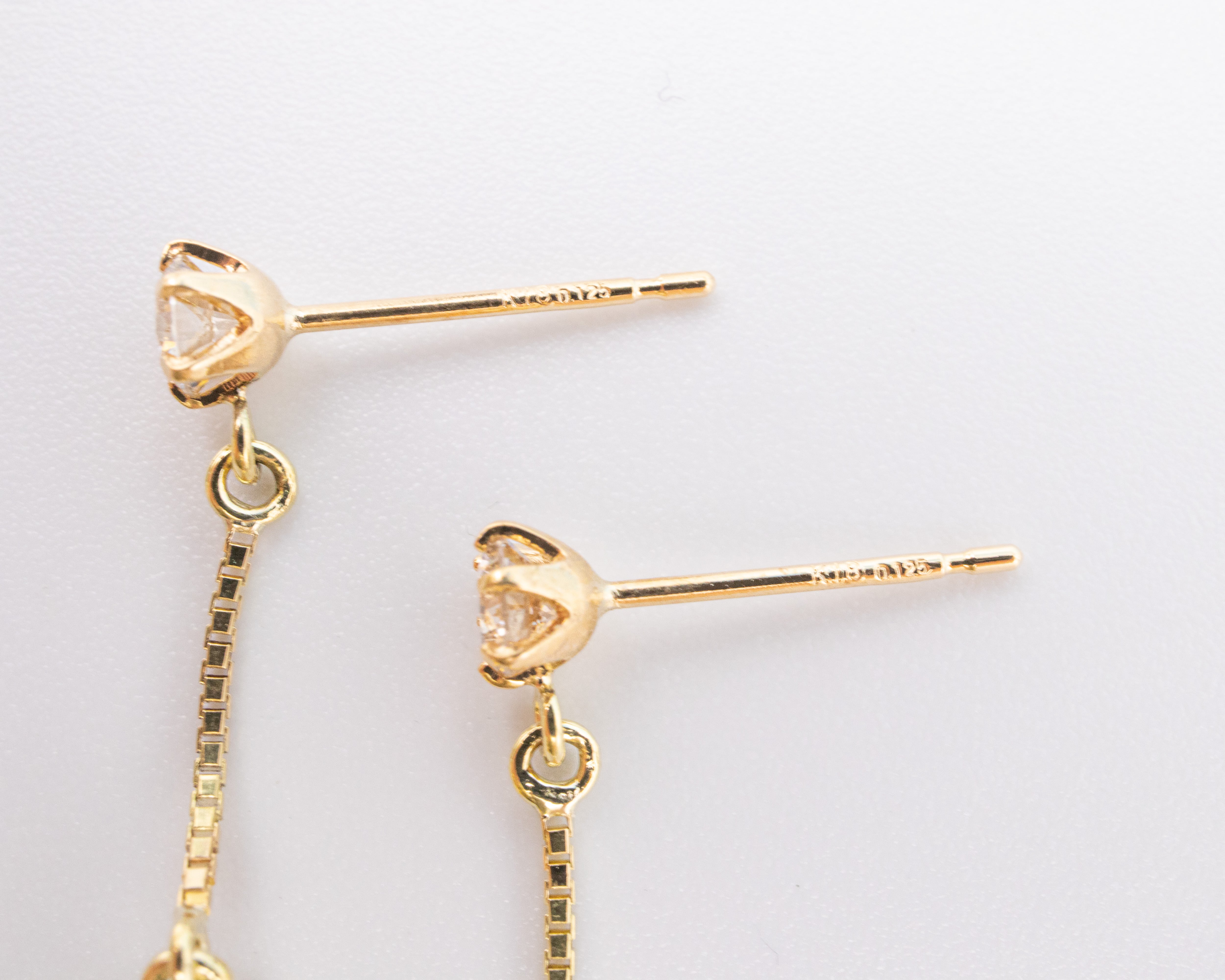 小粒のダイヤモンドが顔まわりを明るく魅せてくれるピアスです。
