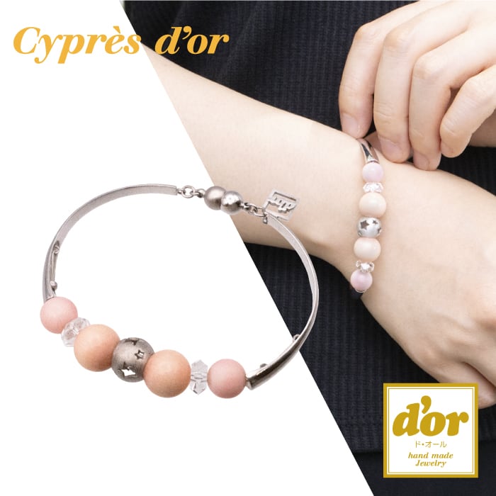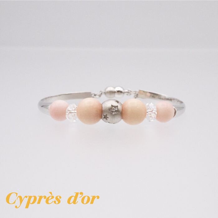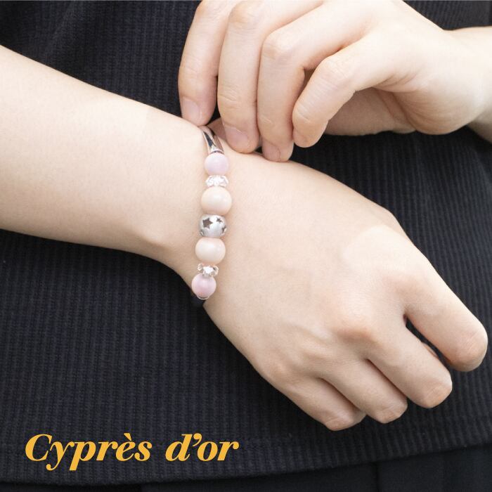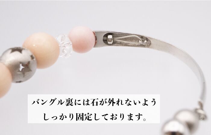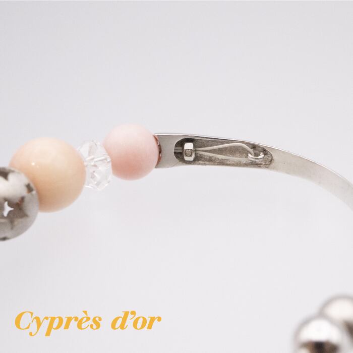 ピンク珊瑚とクォーツの優しい色合いが、女性らしい雰囲気を演出します。