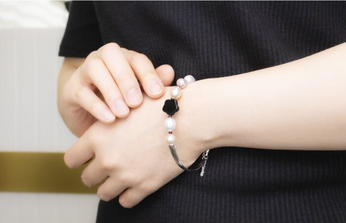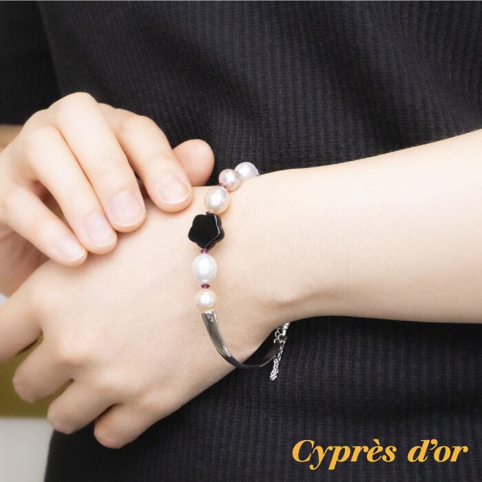 【オニキス×淡水真珠×ガーネットブレスレット】