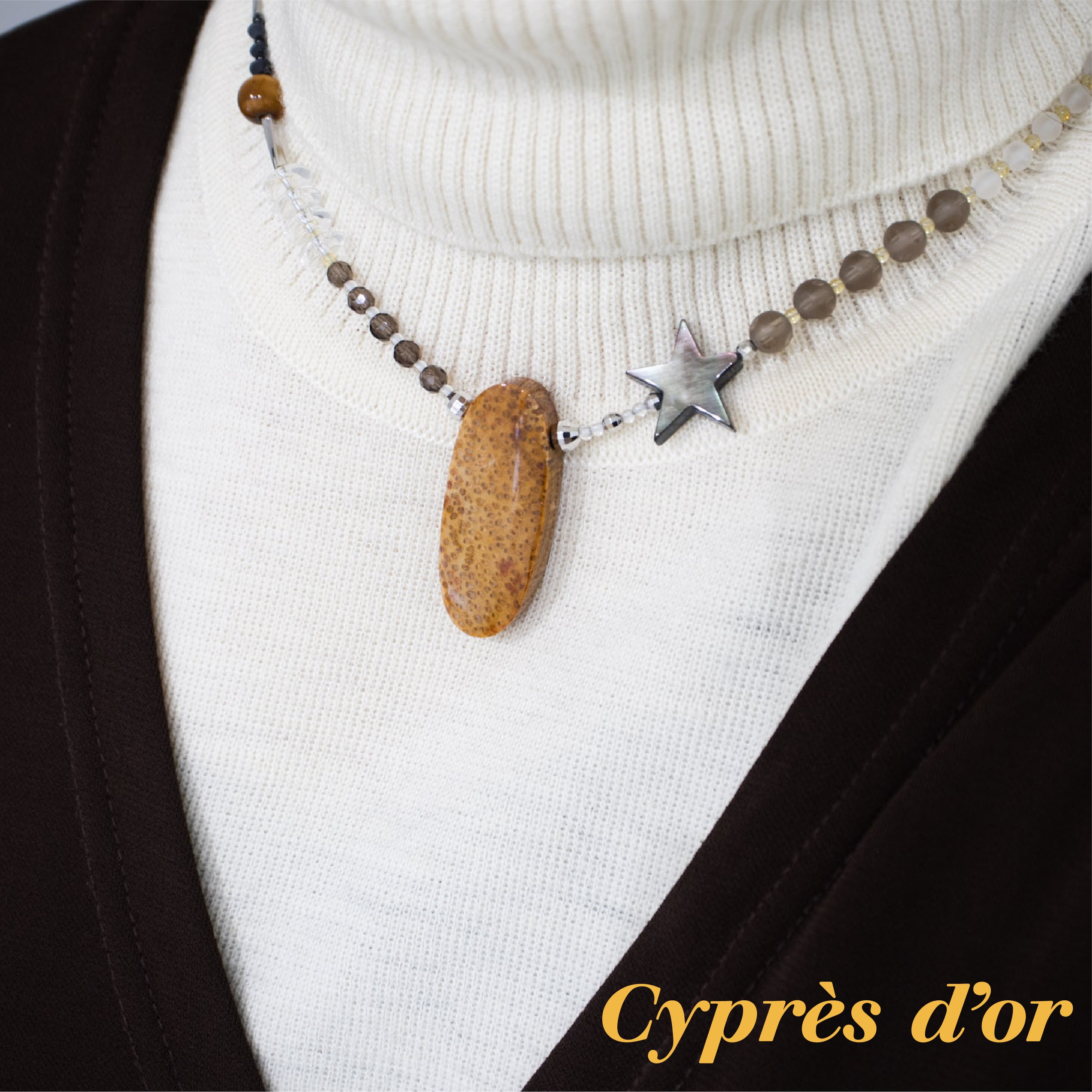 ブラウンをベースに落ち着いたカラーのペンダントネックレスです。
