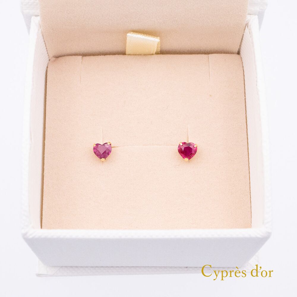 ハート型にカッティングされたルビーピアスです。