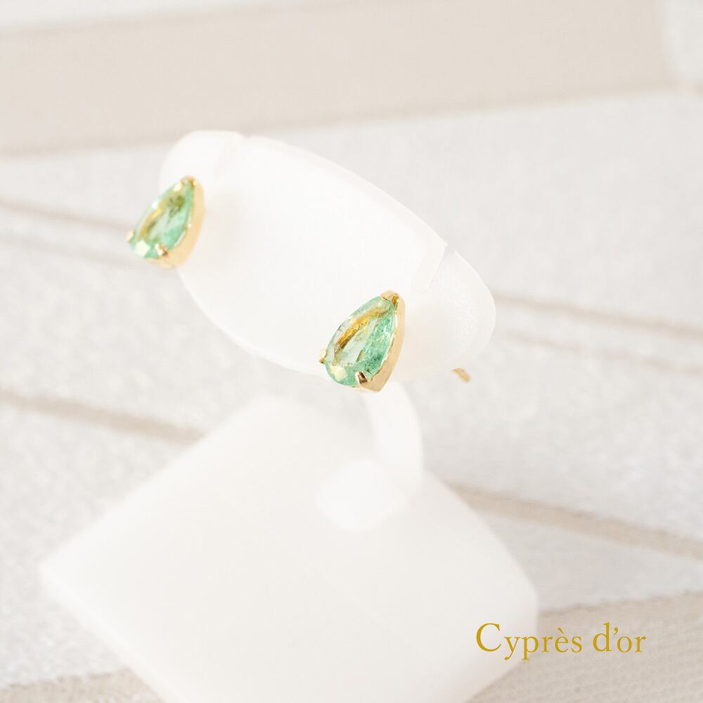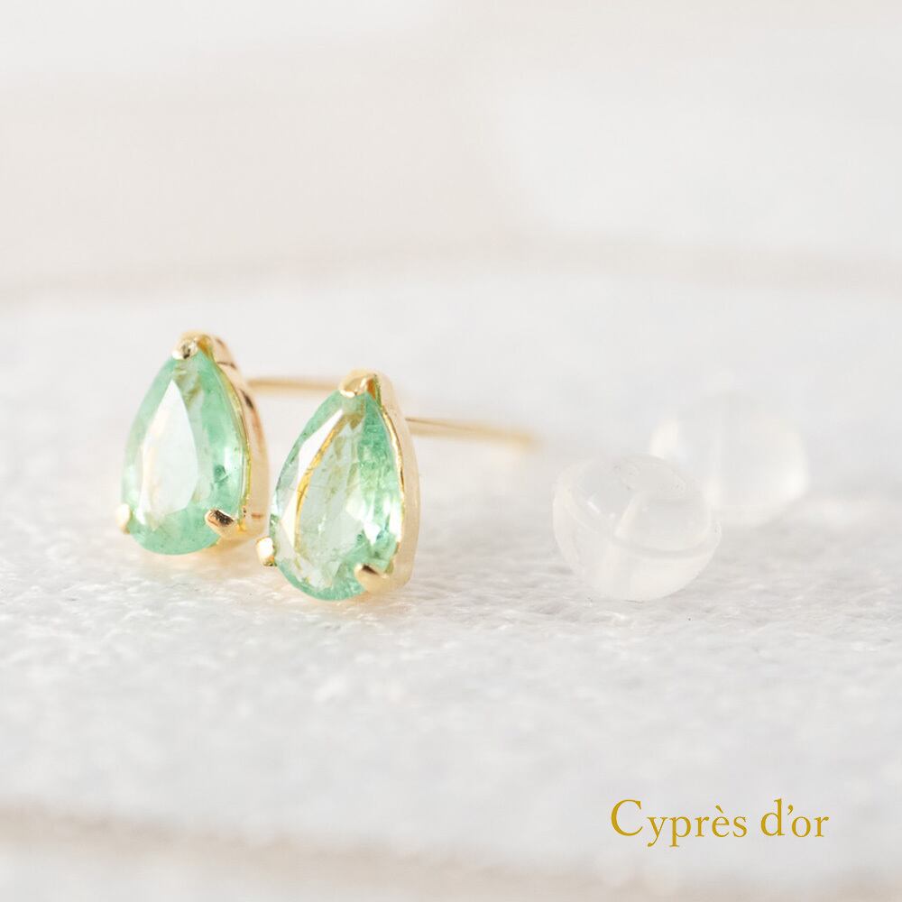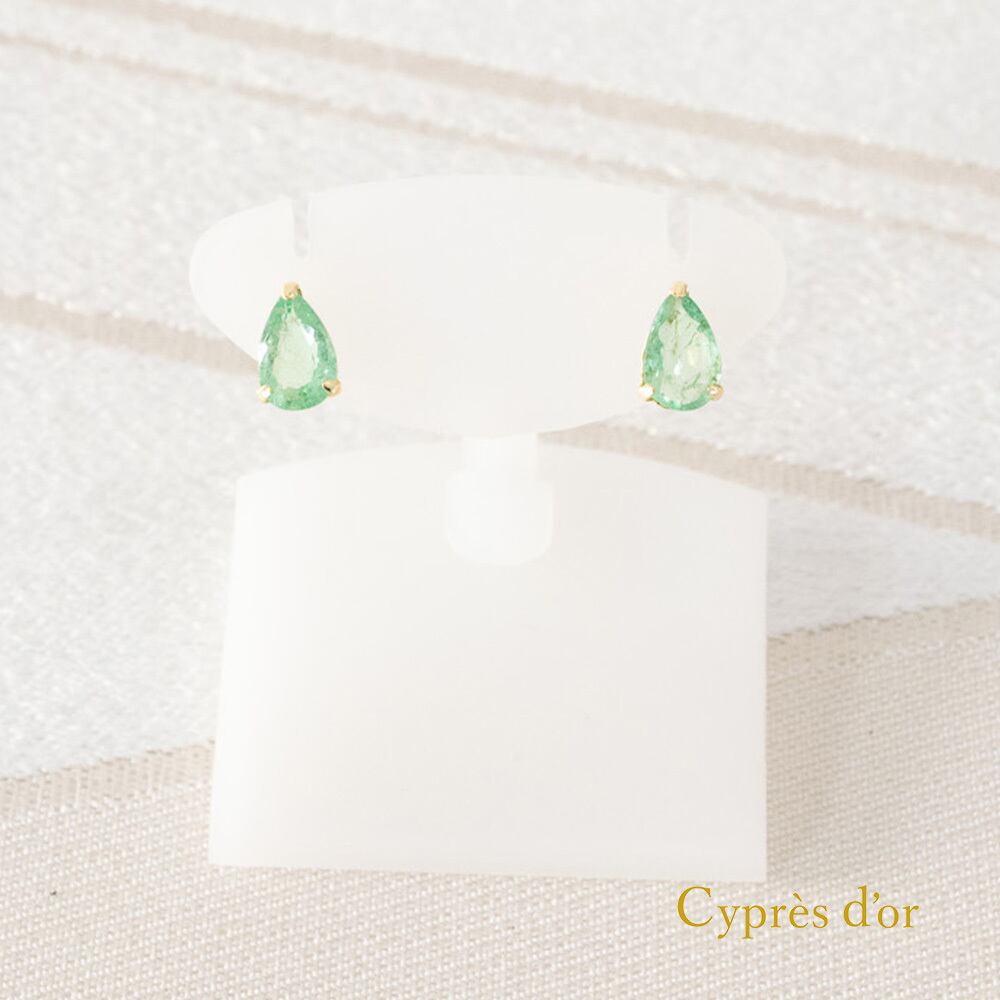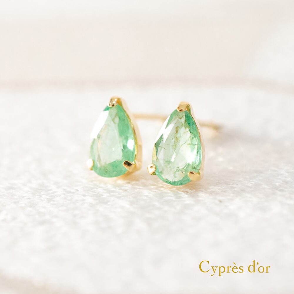 ドロップ型のエメラルドピアスです。